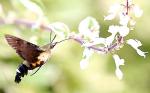 21일 전북 전주시의회 앞 만개한 허브·국화꽃밭에 박각시나방이 찾아왔다. 나방류 중에서 드물게 초당 50∼70회의 날갯짓을 하며 정지비행으로 꿀을 모으는 탓에 종종 벌새로 오인 받기도 한다. 마치 나는 새처럼 아름다운 귀한 손님의 방문에 시의회는 내년 선거를 앞두고 행운을 불러오는 것 아니냐며 반가워하는 분위기이다.2013.10.21,(사진=전주시의