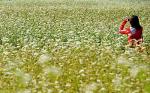 13일 오후 서울 반포한강공원 서래섬에서 열린 메밀꽃 축제를 찾은 여인이 사진을 찍으며 만개한 메밀꽃을 즐기고 있다. 2013.10.13./뉴시스