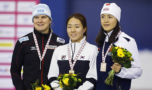 한편, 남자부 팀추월에서는 이승훈(25·대한항공), 주형준(22), 김철민(21·이상 한국체대)이 3분40초53의 기록으로 캐나다(3분37초17)와 미국(3분38초66)에 이어 동메달을 목에 걸었다.