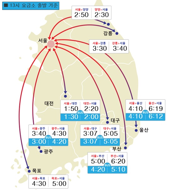 광주에서 서울까지 4시간 30분, 목포에서 서울까지 5시간 소요 예상