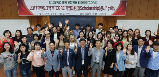 전남대학교 대학인문역량강화(CORE, 코어) 사업단(단장 김양현 · 철학과 교수)은 최근 인문학 전공 학생 48명(학부생 28명, 석사과정 20명)을 선발, CORE 학업지원금(CORE Scholarship) 증서를 수여했다. /전남대학교 제공 곡성심청축제 성황리에 폐막