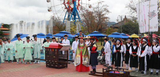 지난 9일까지 열린 전남 곡성군의 심청축제장에 이번 연휴기간 약 9만명이 방문한 것으로 잠정 집계됐다. 사진은 곡성 심청축제 현장에서 ‘시집가는 행렬’ 행사가 열리는 모습. /곡성군 제공 대촌파출소, 주민 대상 범죄예방 교육