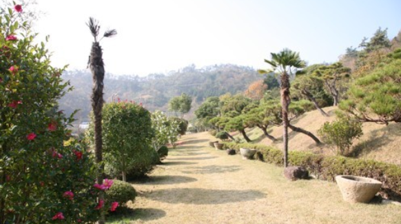 김씨가 4만7천㎡ 산림과 농경지를 활용해 구실잣밤나무, 참가시나무, 목서, 애기동백, 편백, 대나무 등 다양한 난대수종을 심어 평생을 가꿔온 정원이다.