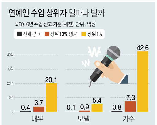 배우 상위1% 년 20억 1천만원, 가수 42억 6천만원