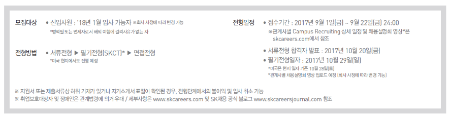 오늘 서류 합격자가 발표되는 채용은 지난 9월 1일부터 지원서 모집을 시작했다. 합격여부는 SK 채용 홈페이지를 통해 확인할 수 있다.