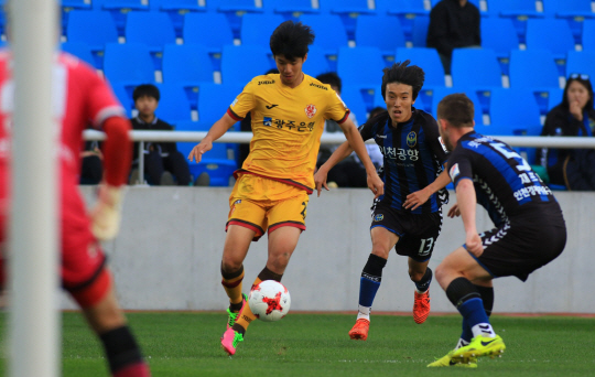 광주는 29일 인천축구전용경기장에서 열린 인천과의 KEB하나은행 K리그 클래식 2017 36라운드 경기에서 0-0으로 무승부를 거뒀다. 이로써 광주(승점 30)는 인천(승점 35)과 승점 1점씩을 나눠가지면서 생존 경쟁에 다시 빨간불이 켜졌다.