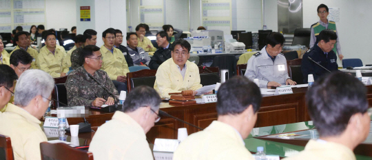 제4차 전남도통합방위협의회 이재영 전남지사 권한대행이 30일 오전 도청 통합방위 종합상황실에서 열린 2017충무ㆍ화랑훈련 상황보고 및 제4차 전라남도통합방위협의회를 주재하고 있다. /전남도 제공