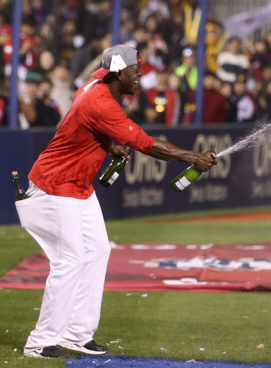 버나디나는 두산과의 한국시리즈 1~5차전에 모두 나와 무려 타율 0.526(19타수 10안타), 1홈런, 7타점의 ‘미친 활약’을 펼쳤다. 그야말로 KIA의 복덩이다.