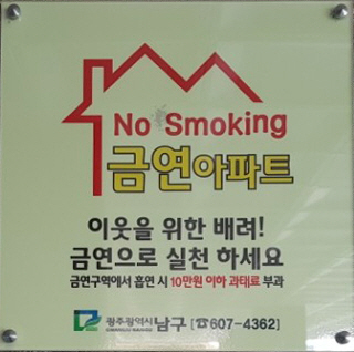 주민 이모(60)씨는 “금연아파트 이지만 담배 피는 사람들을 가끔 찾아 볼 수 있다”면서 “과태료가 10만원이든 5만원이든 누가 각 아파트에 가서 매일 단속하겠냐. 금연아파트 표지판 교체하는 비용만 더 들겠다”고 지적했다.