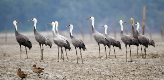 한국을 찾는 흑두루미는 대표적인 월동지인 천수만에 도래하는데 겨울 한파로 물이 얼어붙으면 순천만으로 이동하면서 매년 1월이면 개체 수가 최대치에 이른다.