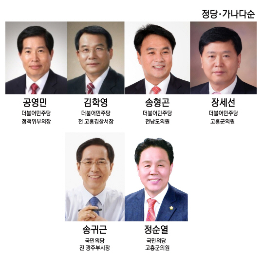 현재 민주당에선 공영민 민주당 정책위 부의장, 송형곤 전남도의원, 장세선 고흥군의원, 김학영 전 고흥경찰서장 등이 자천타천 거론되고 있다.