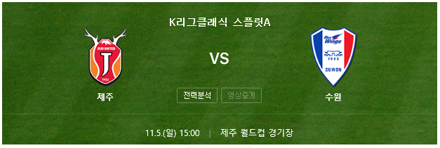 - 제주 : 수원 (11.05(일) 15:00 제주월드컵경기장)