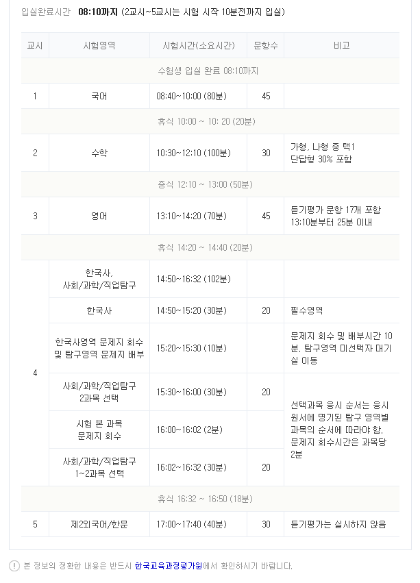 한국교육과정평가원 홈페이지 http://www.suneung.re.kr