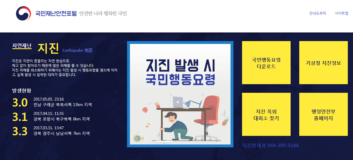 국민재난안전포털 민방위 홈페이지 http://www.safekorea.go.kr