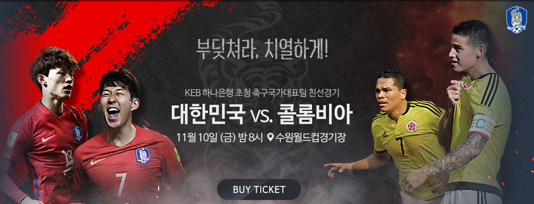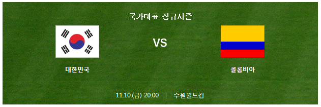11월10일 수원월드컵 경기장에서 대한민국 축구대표팀과 콜롬비아 대표팀간 KEB 하나은행 초청 친선경기가 열린다.