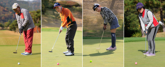 12일 나주 골드레이크CC에서 ‘제1회 남도일보 회장배 K포럼 총동문 골프대회’가 열려 정창선 남도일보 회장을 비롯한 골드조 원우들이 퍼팅을 하고 있다. 왼쪽부터 정창선 남도일보 회장, 김선남 남도일보TV 부회장, 임민자 ㈜성일이노텍 대표(3기), 박순애 ㈜담양한과 명진식품 대표(3기). 나주/임문철 기자 35mm@namdonews.com