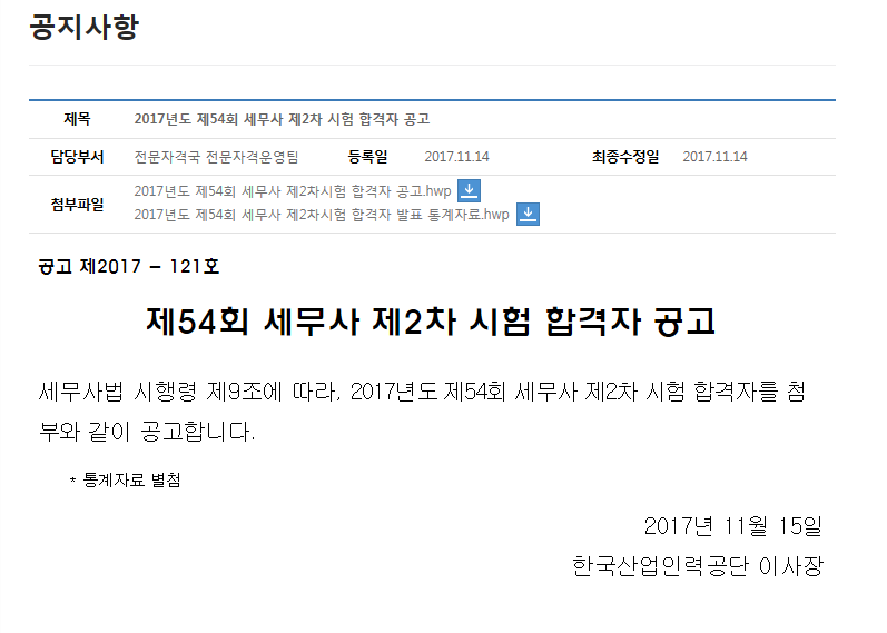 큐넷, 오늘(15일) 제54회 세무사 2차 시험 합격자 발표