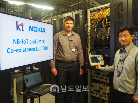 KT는 지난 13일 노키아와 자사의 LTE 기반 사물인터넷 기술인 NB-IoT와 eMTC를 하나의 기지국에서 동시에 제공하는 기술에 성공했다고 밝혔다.