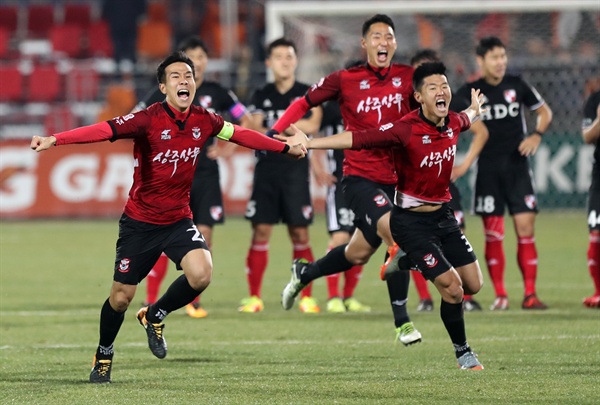 상주 상무는 26일 상주 시민운동장에서 열린 KEB 하나은행 K리그 2017 승강 플레이오프(PO) 2차전에서 승부차기 접전 끝에 5-4로 승리했다.