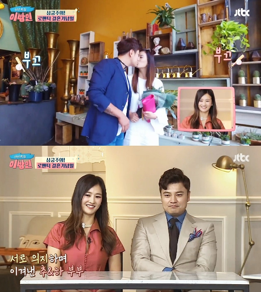 추신수는 아내 하원미를 놀라게 만든 서프라이즈 꽃다발과 하이힐을 신은 그녀를 위해 편한 플랫슈즈까지 챙긴 사랑꾼 면모를 발휘했다. 또 세상에 하나뿐인 핸드메이드 커플티를 준비한 하원미의 선물은 역시 슈퍼그뤠잇 사랑꾼 부부임을 입증했다.