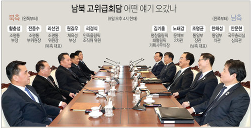한편 남북은 9일 판문점에서 진행하고 있는 고위급회담에서 수석대표를 제외한 나머지 대표 4명이 참석하는 접촉을 1시간 동안 가졌다.