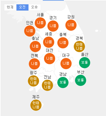 오늘 날씨, 전국 미세먼지 농도 나쁨