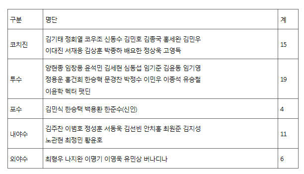 내야수는 김주찬, 이범호, 최원준 등 11명, 외야수는 최형우, 나지완, 로저 버나디나 등 6명이 이름을 올렸다.
