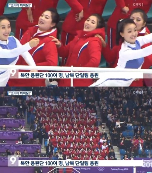 우리선수를 응원하는 등 열정적인 모습을 보인 반면 북한응원단은 경기장에 K팝이 울려퍼지면 무관심한 반응을 보였다.