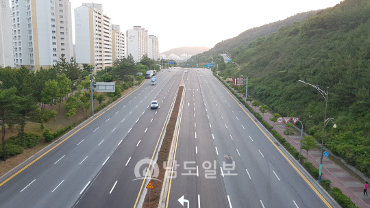 시는 안전사고 예방을 위해 5월 14일 부주동 후광대로 시민문화체육센터 4거리부터 법원입구 4거리까지 550m 구간의 버스전용차로 중앙분리대 정비공사를 착공해 이달 12일 완료했다.