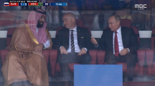 러시아 사우디아라비아 개막전 경기가 시작되는 가운데 러시아의 폭발적인 경기력이 눈길을 끈다.