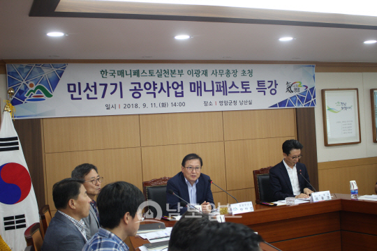 영암군은 최근 한국매니페스토실천본부 이광재 사무총장을 초청해 민선7기 공약사업 매니페스토 특강을 실시했다고 12일 밝혔다.