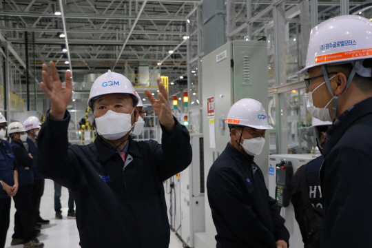 ▶처음 빛그린국가산업단지에서 착공식을 하던 때가 생각난다. 허허벌판에 철골 기둥을 세우던 게 엊그제 같은데 벌써 1년 4개월이 지나 공장을 완공하게 됐다니, 대표로서 무어라 표현할 수 없을 정도로 기쁨이 크다. 공장 건설 과정에서 여러 가지 어려움이 많이 있었지만, 이를 이겨내고 공장을 완성한 현대엔지니어링 관계자는 물론 여기에 참여했던 지역의 기업들과 13만여 명에 이르는 근로자들, 그리고 우리 직원들에게도 고마움을 전하고 싶다. 특히 GGM이 출범할 때부터 많은 성원과 응원을 보내주신 광주시민들에게도 감사의 말씀을 올린다.