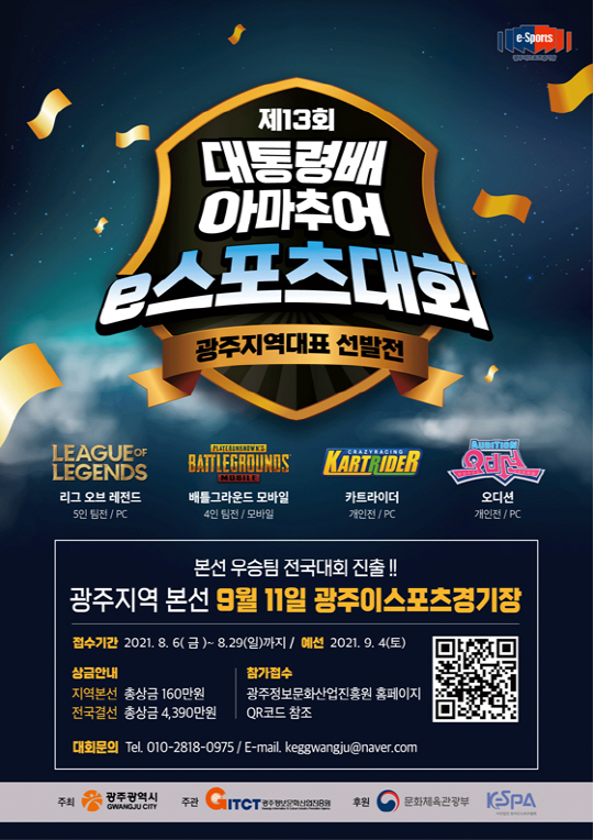 오는 10월 개최되는 ‘제13회 대통령배 아마추어 e스포츠대회’를 앞두고 광주지역 대표를 선발하는 경기가 열린다.