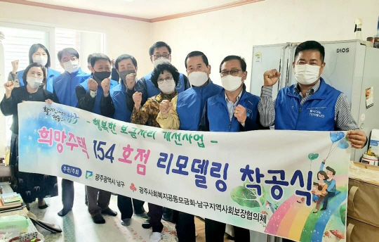 광주광역시 남구 지역사회보장협의체는 지난 5일 백운2동 양림스카이에서 행복한 보금자리 개선사업인 희망주택 154호점 리모델링 착공식을 가졌다./남구 지사협 제공