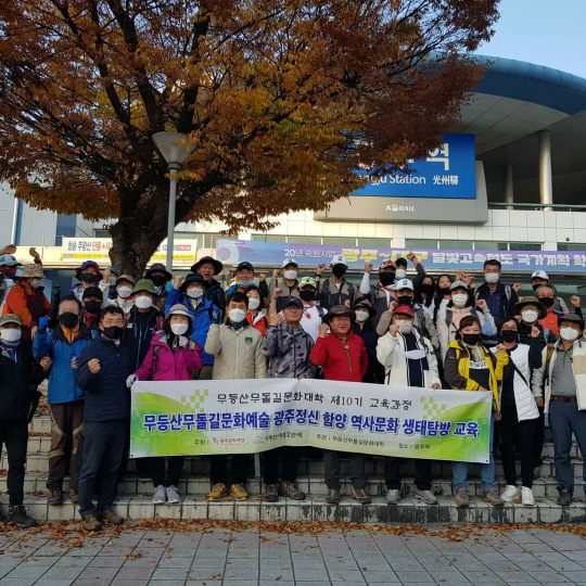 (사)무등산무돌길협의회는 6일 무등산무돌길문화대학 제10기 종합실기교육과 종강식을 광주역과 각화중 일대에서 가졌다./무등산무돌길협의회 제공