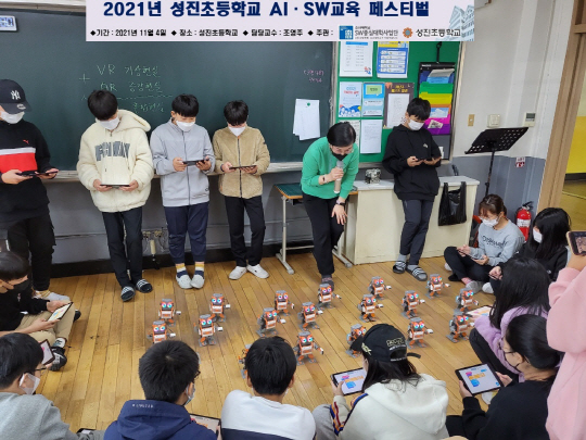 조선대학교 SW중심대학사업단이 광주 성진초등학교 6학년을 대상으로 한 ‘2021 AI·SW교육 페스티벌’ 과정을 성황리에 마무리했다. /조선대 SW중심대학사업단 제공