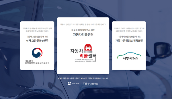 - 리콜 차량 확인, 국토교통부 한국교통안전공단 자동차리콜센터