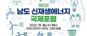 에너지 대전환 시대, 국내외 신재생에너지 정책 흐름을 한눈에 파악할 수 있는 제5회 남도 신재생에너지 국제포럼이 16일 전남 신안에서 개최된다.전라남도가 주최하고 남도일보, 녹색에너지연구원이 주관하는 제5회 남도 신재생에너지 국제포럼은 ‘신재생에너지 대전환, 전남 에너지산업 발전 방향’을 주제로 16일 오후 2시 전남 신안군 자은면 라마다프라자 자은도 그랜드볼룸홀에서 개최된다.이번 국제포럼은 신훈영 홍익대 교수의 ‘에너지 위기와 지역별 차등 전기요금제’ 기조강연을 시작으로 박성우 한국에너지공단 신재생에너지정책실장의 ‘신재생에너지 대