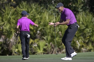 우즈, 아들 찰리의 이글에 ‘깜놀’ 11살 찰리 우즈, 아버지 제치고 PNC 챔피언십 최고 스타 메이저 대회에서 15번이나 우승한 골프 황제 타이거 우즈도 19일(현지시간) 미 플로리다주 올랜도에서 열린 PNC 챔피언십 패밀리 토너먼트 대회에서 자신의 11살 난 아들 찰리 우즈가 뽑아낸 이글 샷에 벌어진 입을 다물지 못했다고 AFP가 보도했다. 이미 어린이 골프 대회에서 몇차례 우승한 경험이 있는 찰리는 이번 대회에서 아버지 우즈를 제치고 최고의 인기 스타로 떠오르고 있다. 타이거 우즈와 비슷한 시기에 프로로 데뷔해 약 170개 대