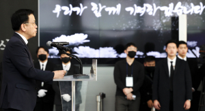"피해자와 유가족에 대한 명예 훼손은 명백한 사회적 범죄로, 2차 가해 방지를 위해 필요한 입법을 추진하겠습니다."우원식 국회의장은 무안국제공항 2층에서 열린 12·29 제주항공 여객기 참사 희생자를 기리기 위한 합동추모식에서 "유가족들이 외롭지 않게 국회가 앞에 서겠다"며 "피해자와 유가족의 구제, 진상규명과 재발방지 대책을 법제화 하기 위해 특별법 제정에도 성심을 다하겠다"고 밝혔다.이날 합동 추모식에는 12·29 제주항공 여객기 참사 희생자들의 유가족을 비롯해 최상목 대통령 권한대행, 여야 수장, 공무원, 자원봉사자 등 1천5