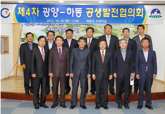 섬진강을 사이에 두고 실질적인 동일 생활권을 구축하고 있는 광양시와 하동군이 공동번영을 위해 두 손을 맞잡은 이후 4차 공생발전협의회가 10월 30일 하동군청에서 양 자치단체 부시장·부군수를 비롯해 관계 공무원 30여명이 참석한 가운데 열렸다.