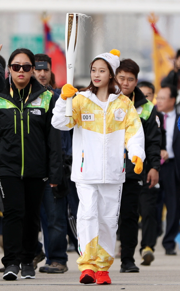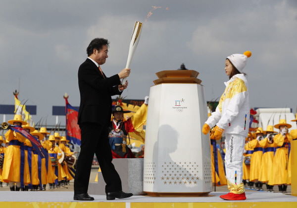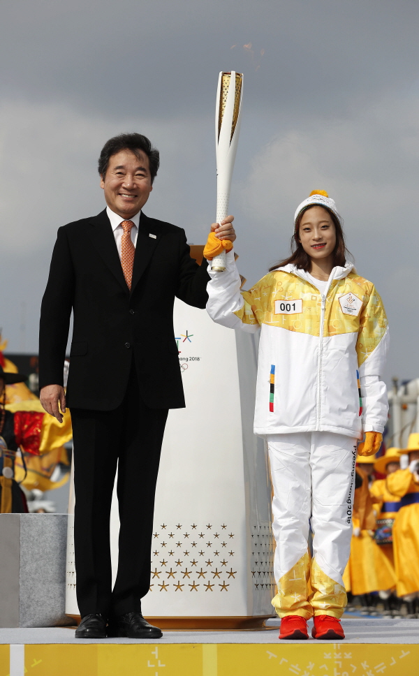 피겨 유망주 유영이 이낙연 총리로부터 성화를 전달받아 첫 봉송 주자로 나섰다.