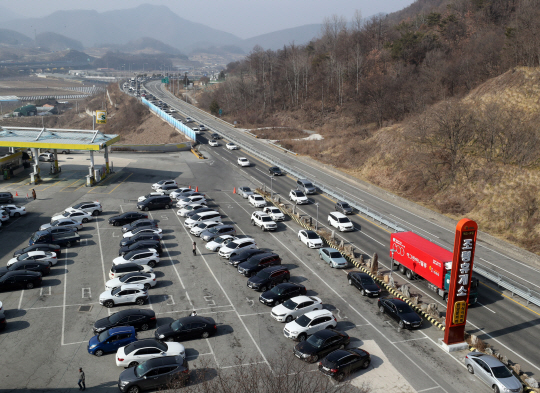 한국도로공사는 이날 정오를 고비로 정체가 서서히 풀려 오후 7∼8시께 대부분 구간에서 정체가 해소될 것으로 전망했다.