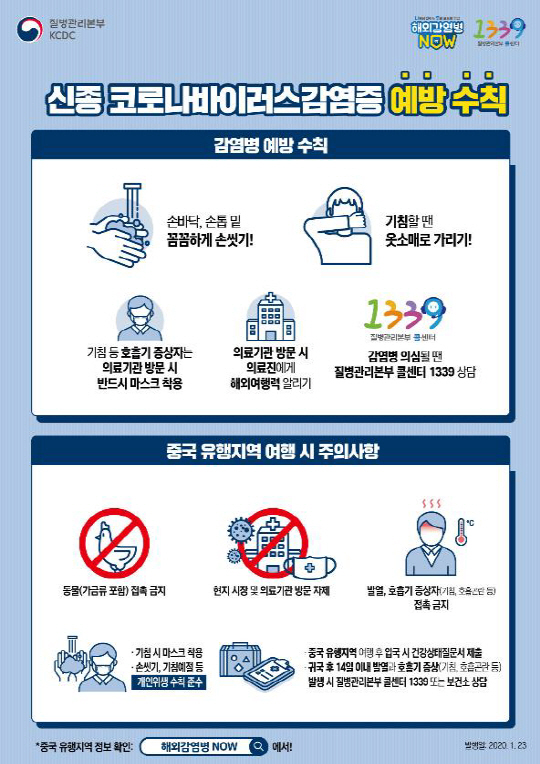 신종 코로나바이러스 감염증 환자로 의심될 경우 질병관리본부 콜센터(☎1339)나 보건소에 신고해 달라고 방역대책반은 전했다.