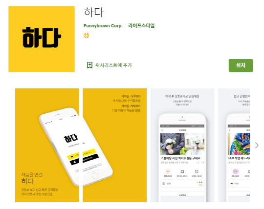 전공자와 자격증보유자, 경력단절자 등 활용되지 못하고 있는 재능들이 너무 많아 이를 재능거래플랫폼으로 옮겨 현실적인 경제활동 기반을 마련한 것이다. 사전 수요조사 300건의 데이터를 기반으로 기획·개발된 ‘하다’는 개인이 보유한 재주와 능력을 살려 근거리에서 경제활동을 할 수 있도록 최적화된 애플리케이션이다. 최근 근거리 기반 중고물품 거래 플랫폼 ‘당근마켓’의 폭발적 성장으로 근거리경제의 가능성이 이를 뒷받침한다.