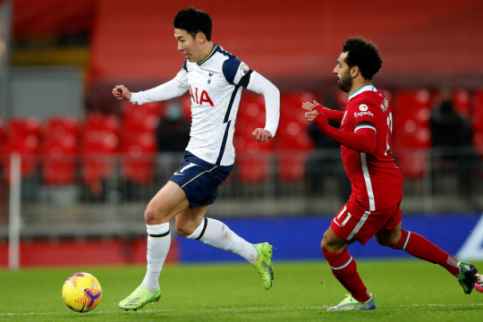 손흥민은 17일 오전 영국 리버풀의 안필드에서 열린 리버풀과의 2020-2021시즌 프리미어리그 13라운드 원정 경기에 선발 출전해 토트넘이 0-1로 뒤진 전반 33분 동점골을 넣었다.