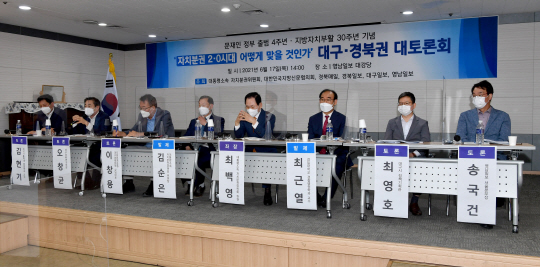 대통령소속 자치분권위원회는 영남일보, 대한민국 지방신문협의회(대신협)와 공동으로 17일 영남일보 대강당에서 ‘문재인 정부 출범 4주년 및 지방자치 부활 30주년 기념 전국 순회 대토론회’를 개최했다. 온·오프라인으로 진행된 이 날 행사는 자치분권위원회가 자치분권 2.0시대를 열기 위한 국민적 공감대 형성 및 과제 진단을 위해 전국을 순회하며 개최하고 있는 권역별 토론회다. 지난 3월 서울을 시작으로 경인권과 호남권에 이어 이번에 대구에서 대경권 토론회가 마련됐다.