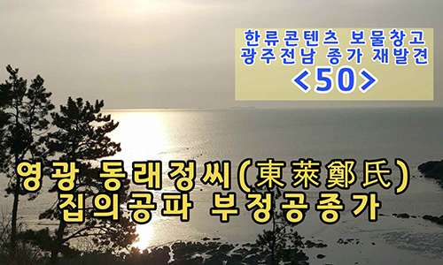 아름다운 낙조로 유명한 영광 백수 해안도로 남쪽에는 넓은 간척지 한가운데 섬처럼 아담한 가지산(歌芝山)이 있다. 수많은 문신과 재상을 배출한 동래정씨(東萊鄭氏)는 가지산 자락의 가지마을에서 집성촌을 이루며 선조의 뜻을 계승하고 학문의 전당을 열어 후진을 양성하며 400여년 세대를 잇고 있다. 한양에서 나고 자라 남쪽 바다 작은 섬에 입향한 죽창공이 어린시절 친구였던 허균과 교유하고, 혼맥을 맺은 평생지기 벗 강항 선생과 태평성대를 갈망하는 시를 짓고 노래했던 곳, 전남 영광 백수면 가지마을의 동래정씨 집의공파 부정공종가를 찾아 가문의 내력을 살펴본다.