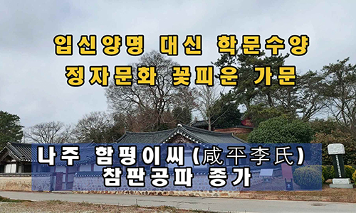 영산강 줄기가 굽어 흐르는 전남 나주시 다시면 죽산교 앞 죽지마을에는 16세기 호남유학의 르네상스를 이끌었던 학자들의 문장과 삶의 흔적이 남아 있는 소요정이 있다. 비록 사용 편의에 따라 변형됐지만 문장과 실천으로 이상사회를 꿈꿨던 선현들의 선비정신을 느낄 수 있는 명소다. 이 마을에서 20여세대를 이어 세거하며 전란과 정쟁의 소용돌이에 휘말려 희생됐지만 향약과 동계로서 가학을 계승하고 정자문화와 미풍양속을 전승한 나주 함평이씨(咸平李氏) 참판공파 종가를 찾아 가문의 내력을 살펴본다.