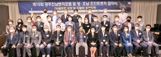 11일 광주전남벤처기업협회에 따르면 지난 8일 광주 서구 라마다플라자광주호텔에서 부산벤처기업과 광주전남 벤처기업들의 교류 확대와 기업간 실질적 성과를 위해 제15회 광주전남벤처포럼 및 영·호남조인트벤처 설립 협약식이 열렸다.